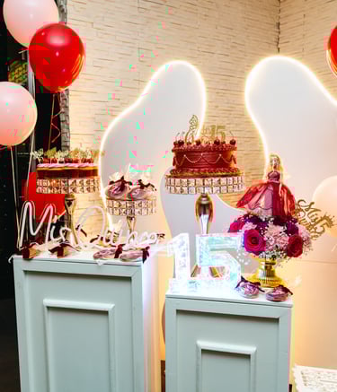 Ofrecemos alquiler de mobiliario y dulces personalizados para hacer tu fiesta única.